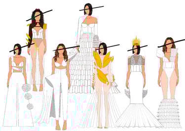 • Ilustración de prendas: Representación de los diseños sobre maniquíes base, mostrando proporciones, estilo y movimiento.