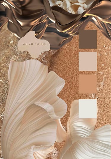 Las colecciones que verás a continuación son proyectos personales. Cada una nace de un proceso de investigación que me aporta la inspiración para crear. A partir de ahí desarrollo moodboards y sketchbooks donde defino texturas y paletas de color que luego darán forma a los diseños finales.